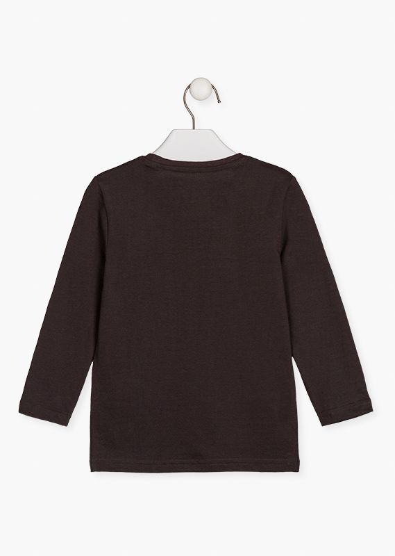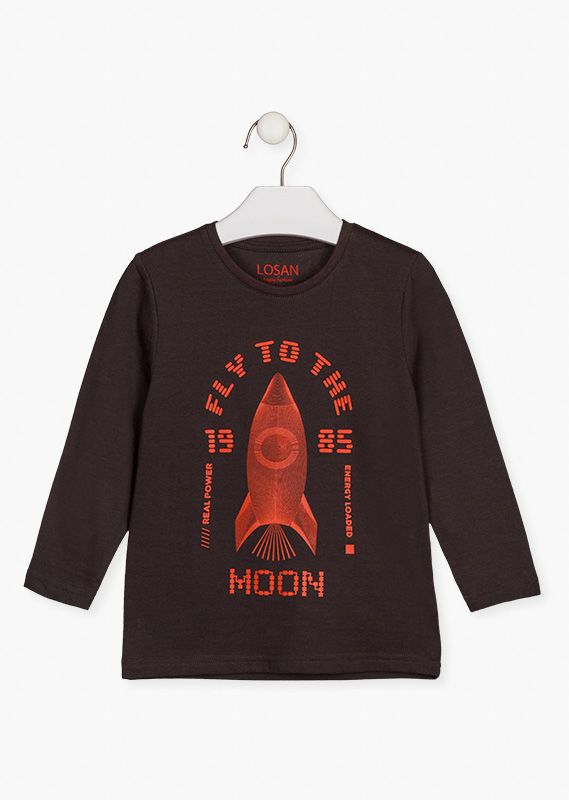 Camiseta con vehículos rayados en el delantero para niño. Camiseta de punto de manga larga y cuello caja. Con estampado de relieve en el delantero. Disponible en varios modelos y colores.