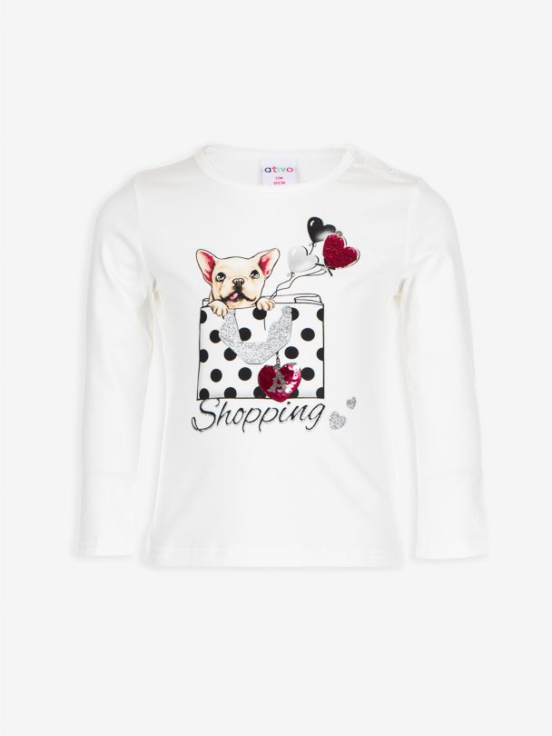 Camiseta estampada para bebé niña. Disponible en crudo y rosa.
