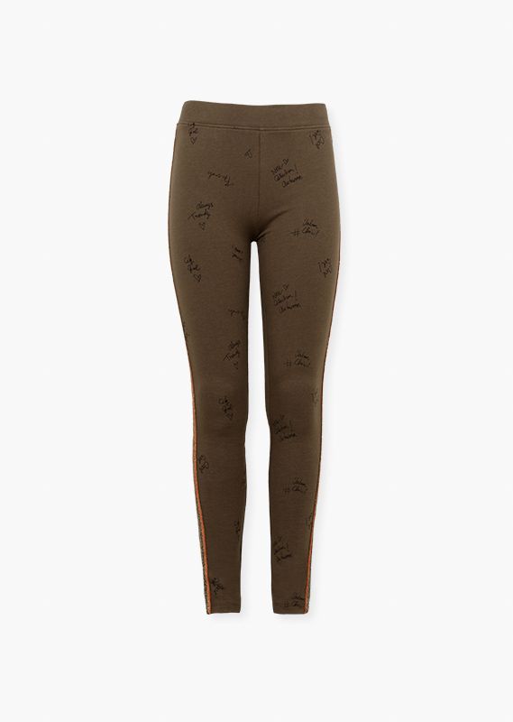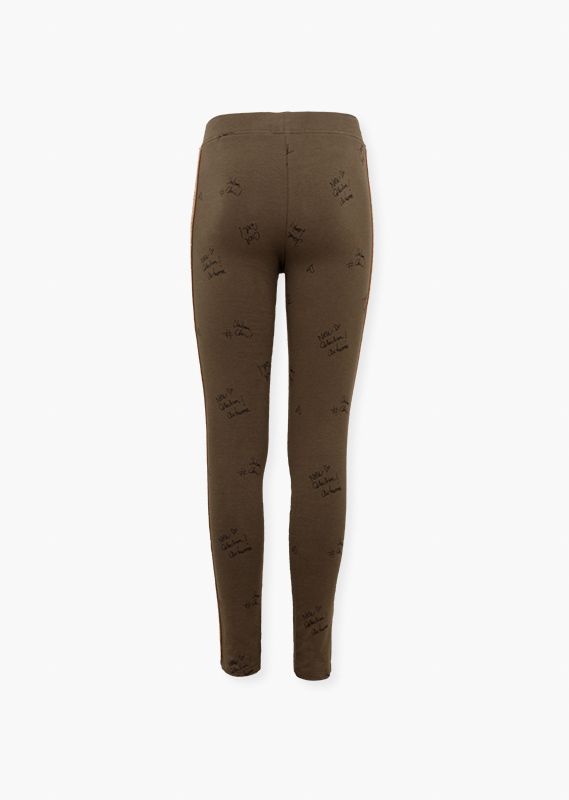 Leggins con piezas laterales para chica. Leggins de felpa perchada estampada. Elástico en la cintura.