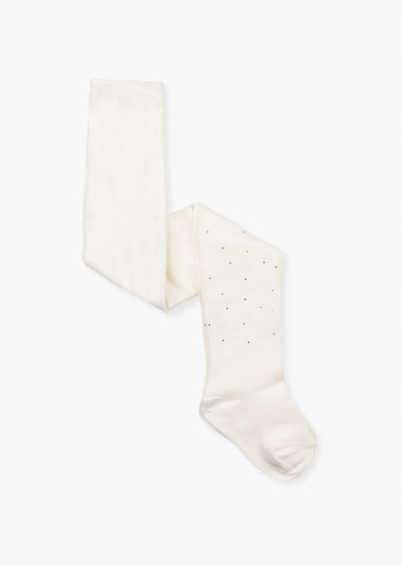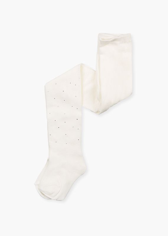 Leotardo con brillantitos para niña. Leotardo en tricotosa. Presentado en blíster. Disponible en gris, crudo y azul marino.