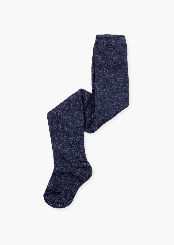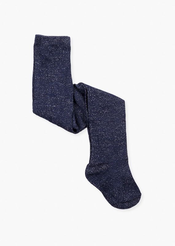 Leotardo con detalle de hilo brillante para niña. Leotardo en tejido de tricotosa. Presentado en blíster. Disponible en gris y azul marino.