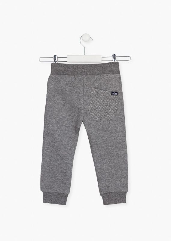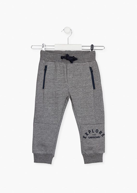 Pantalón con bolsillos con cremallera en el delantero para niño. Pantalón de felpa perchada con estampado en pernera. Con bragueta simulada y cordón ajustador en cintura. Con terminaciones de canalé en bajos y cintura. Con bolsillo plastón en la espalda.