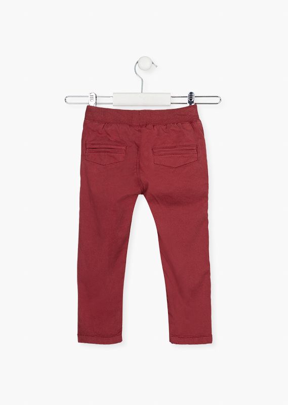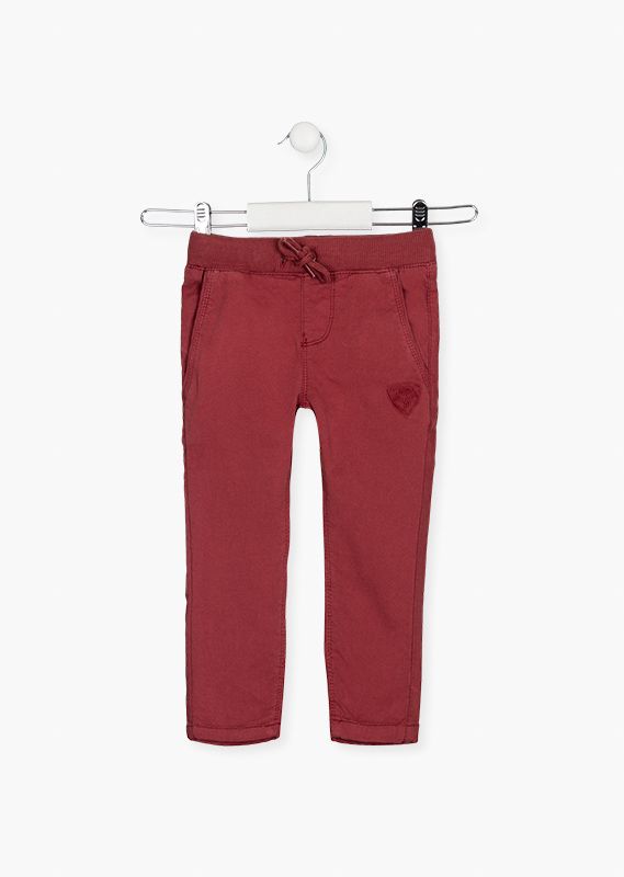Pantalón de interlock con cintura de canalé para niño. Pantalón con bolsillos delanteros y bordado en el delantero. Con cintura elástica con cordón. Con goma ajustadora en interior de cintura. Con bolsillos de ojal en la espalda.