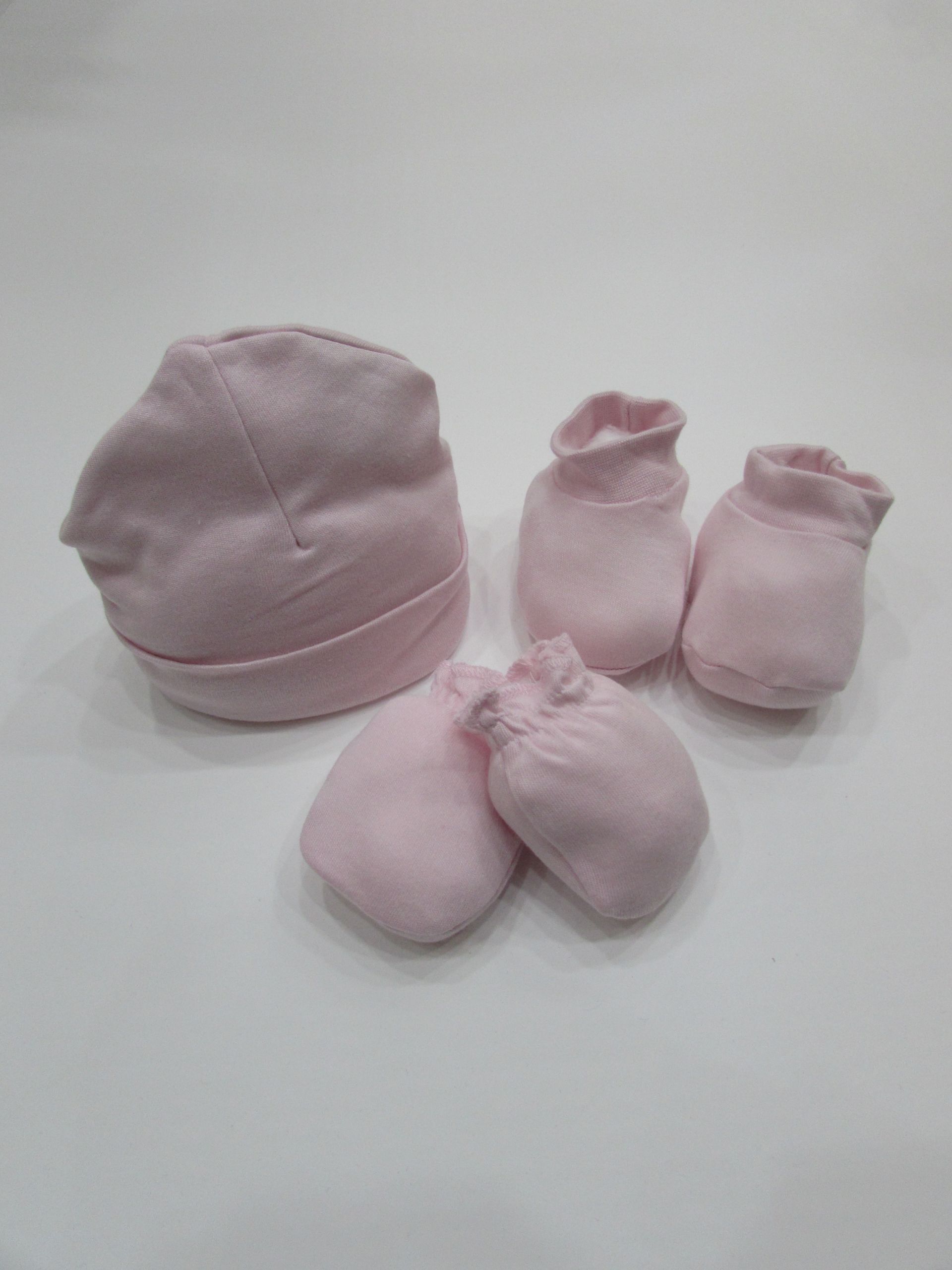 Set Regalo 3 piezas en Rosa para bebé (Gorro, Manoplas y Peucos). Piezas muy suaves y cálidas. Composición: Bambú Natural (70% Bambú y 30% Algodón). Disponible en blanco, rosa, azul y gris.