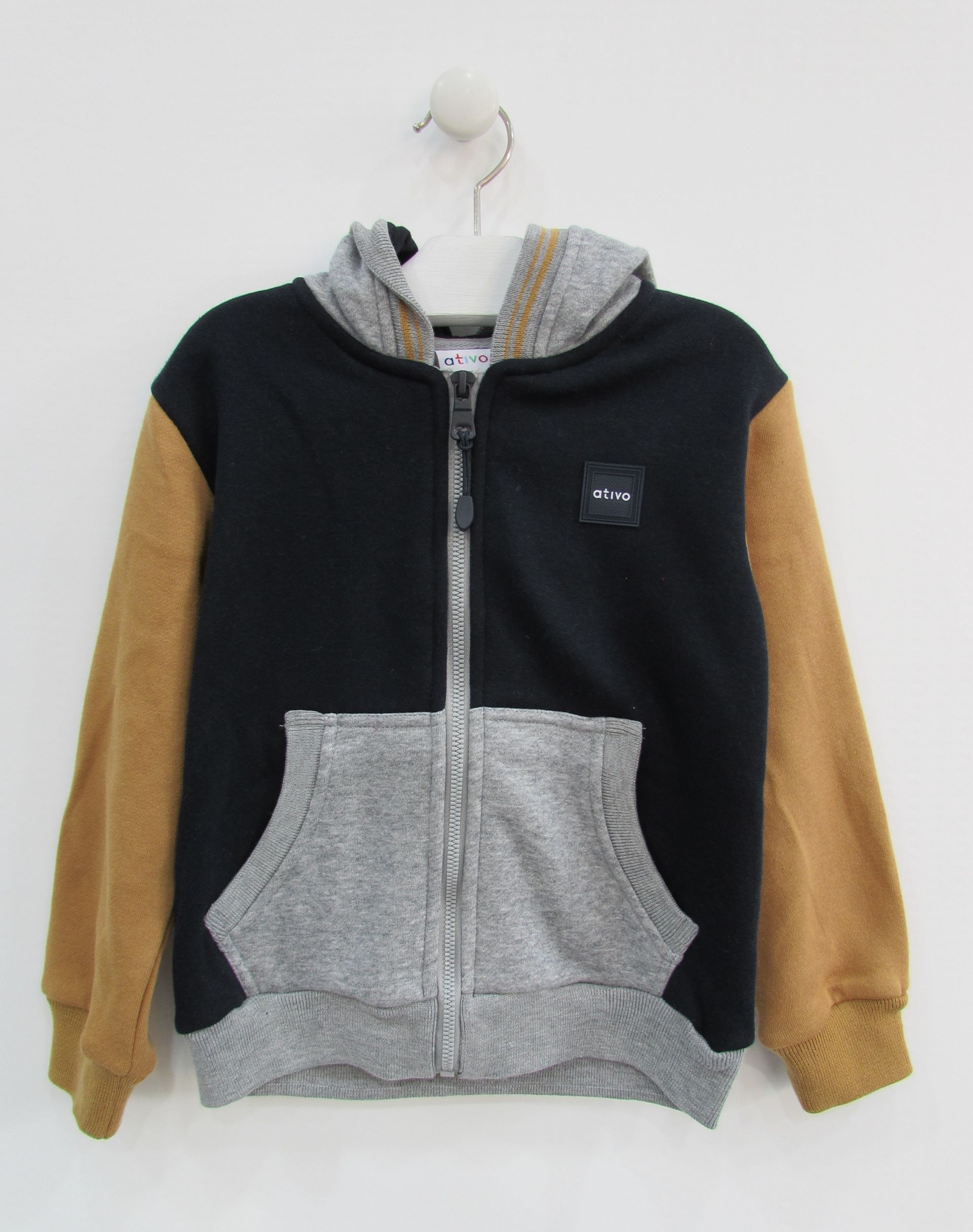 Sudadera con cremallera y capucha para niño. Disponible en dos colores.