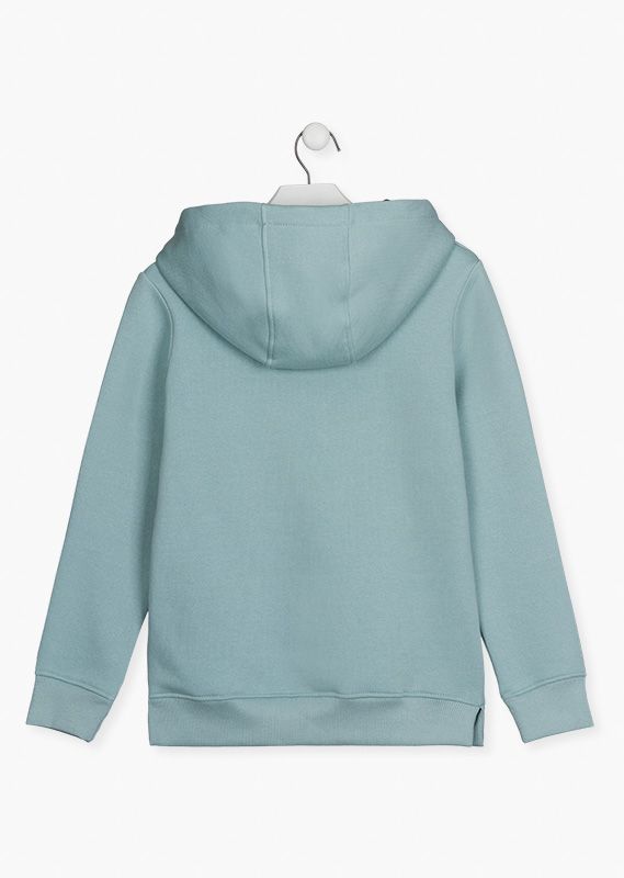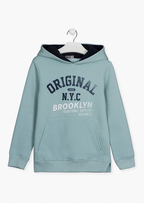 Sudadera con estampado desgastado para chico. Sudadera de felpa en tejido de mezcla de algodón. Con capucha. Bolsillo canguro. Terminaciones de canalé. Aberturas laterales en el bajo.