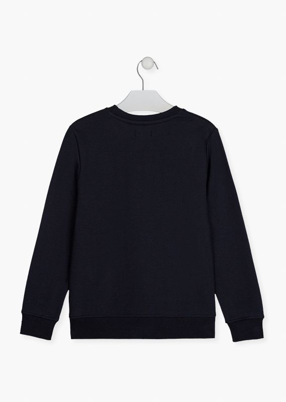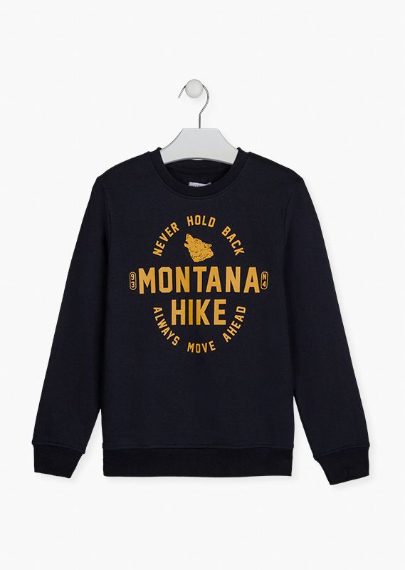 Sudadera con estampado frontal para chico. Sudadera cuello redondo. Tejido de algodón orgánico de felpa. Terminaciones en tejido de canalé. Disponible en verde y mostaza.
