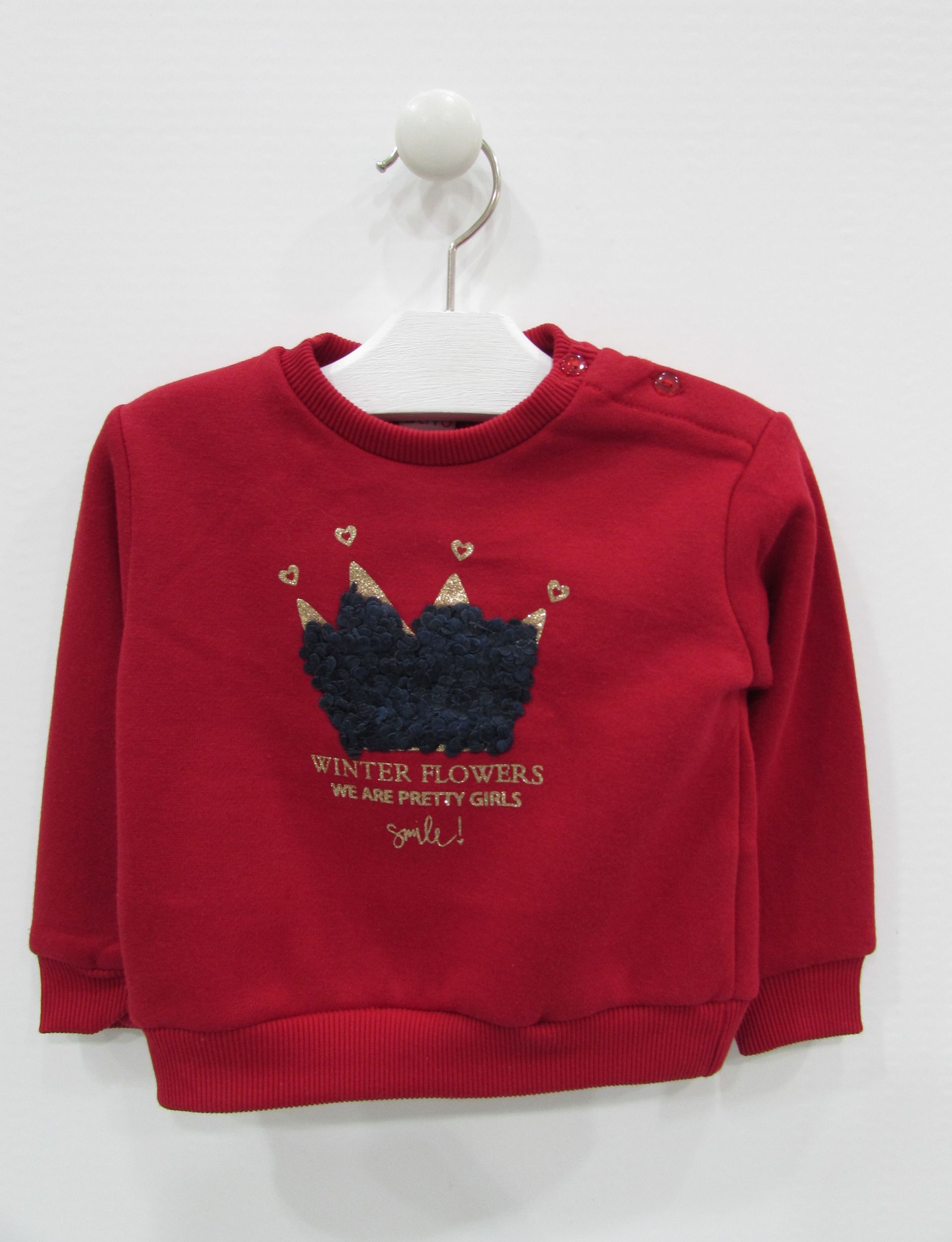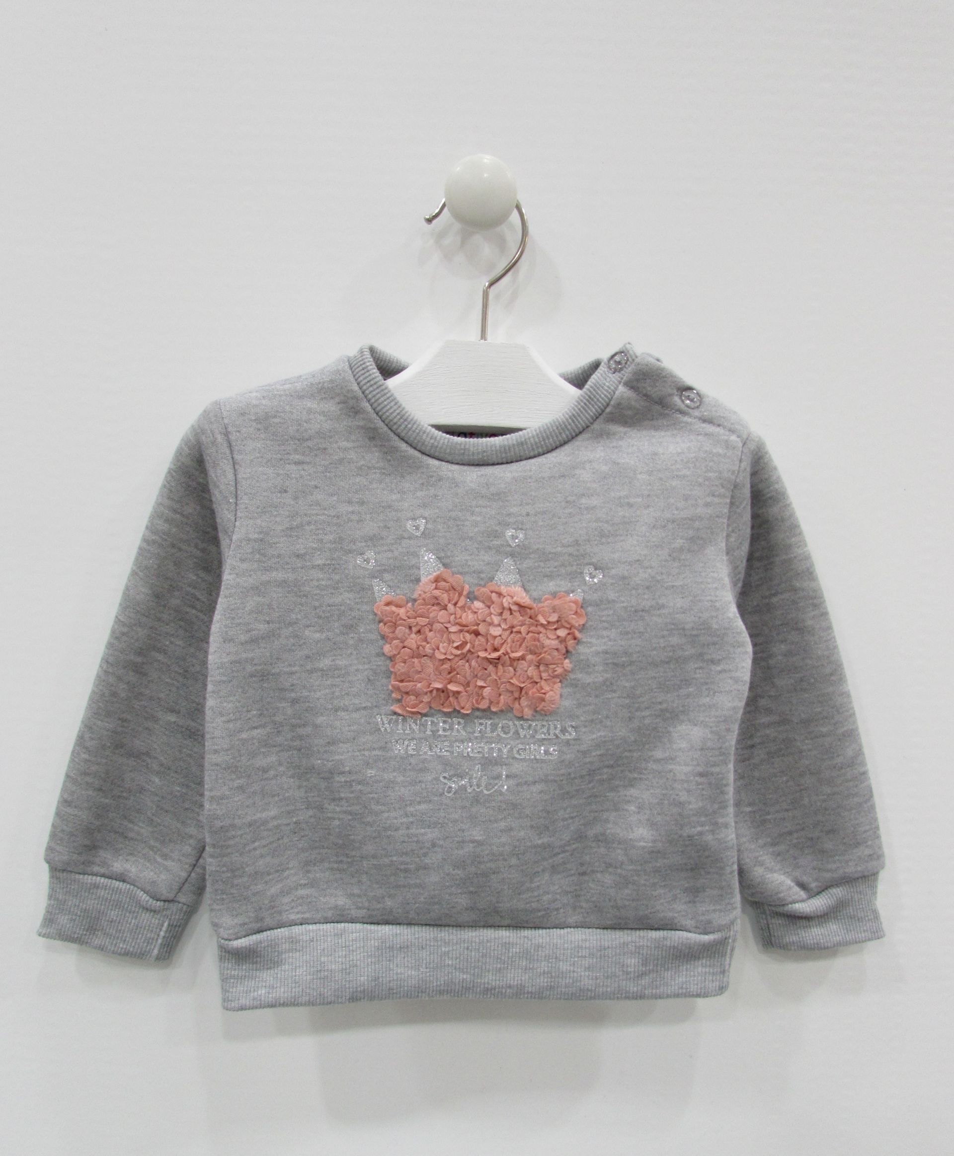 Sudadera corona para bebé niña. Sudadera sin capucha para bebé niña. Disponible en gris y granate.
