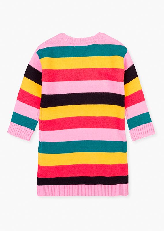Vestido con bordado de frase y corazón para niña. Vestido manga larga y cuello redondo en tejido de tricotosa a rayas.