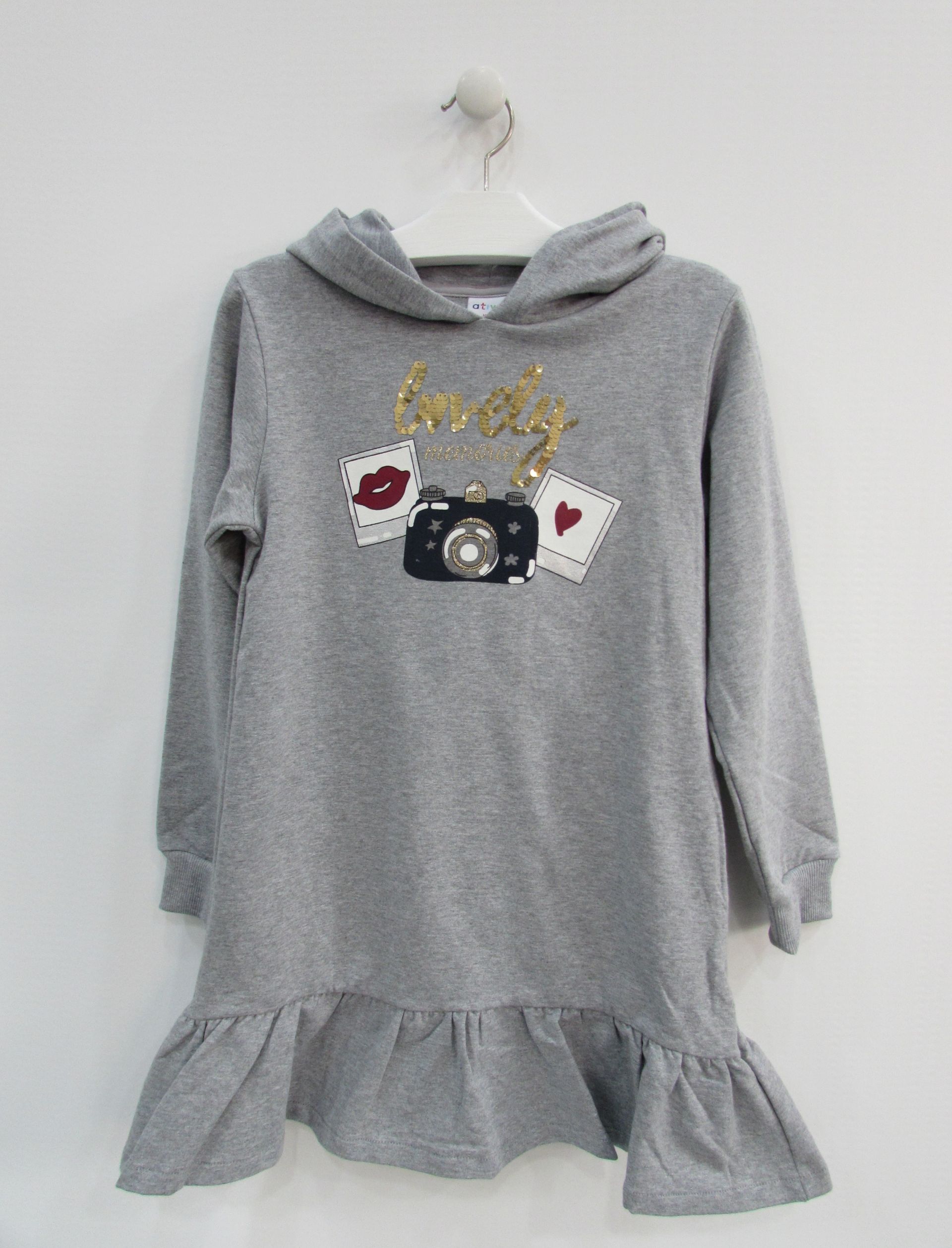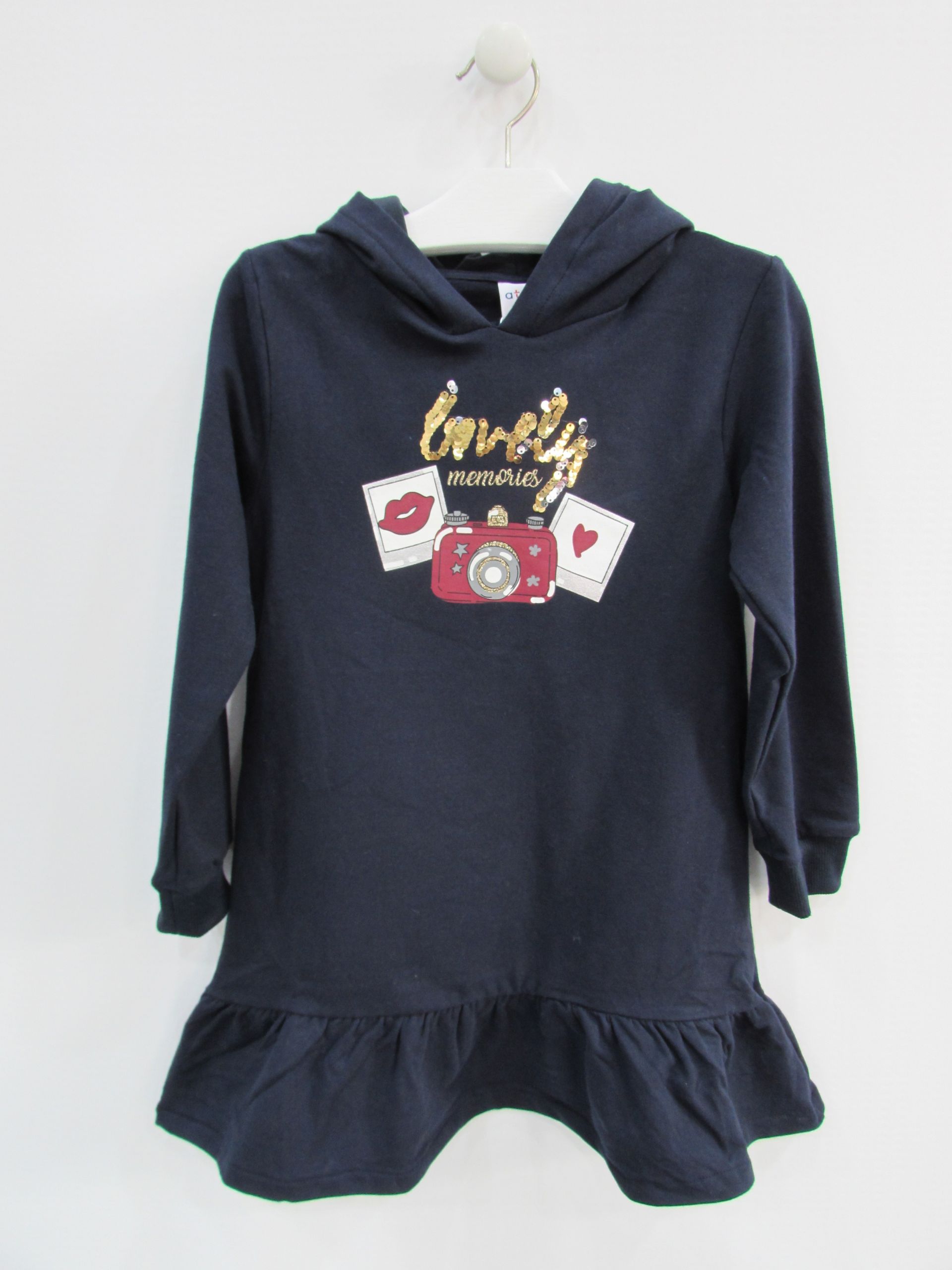 Vestido con capucha para niña. Vestido en algodón para niña. Disponible en gris y azul marino.